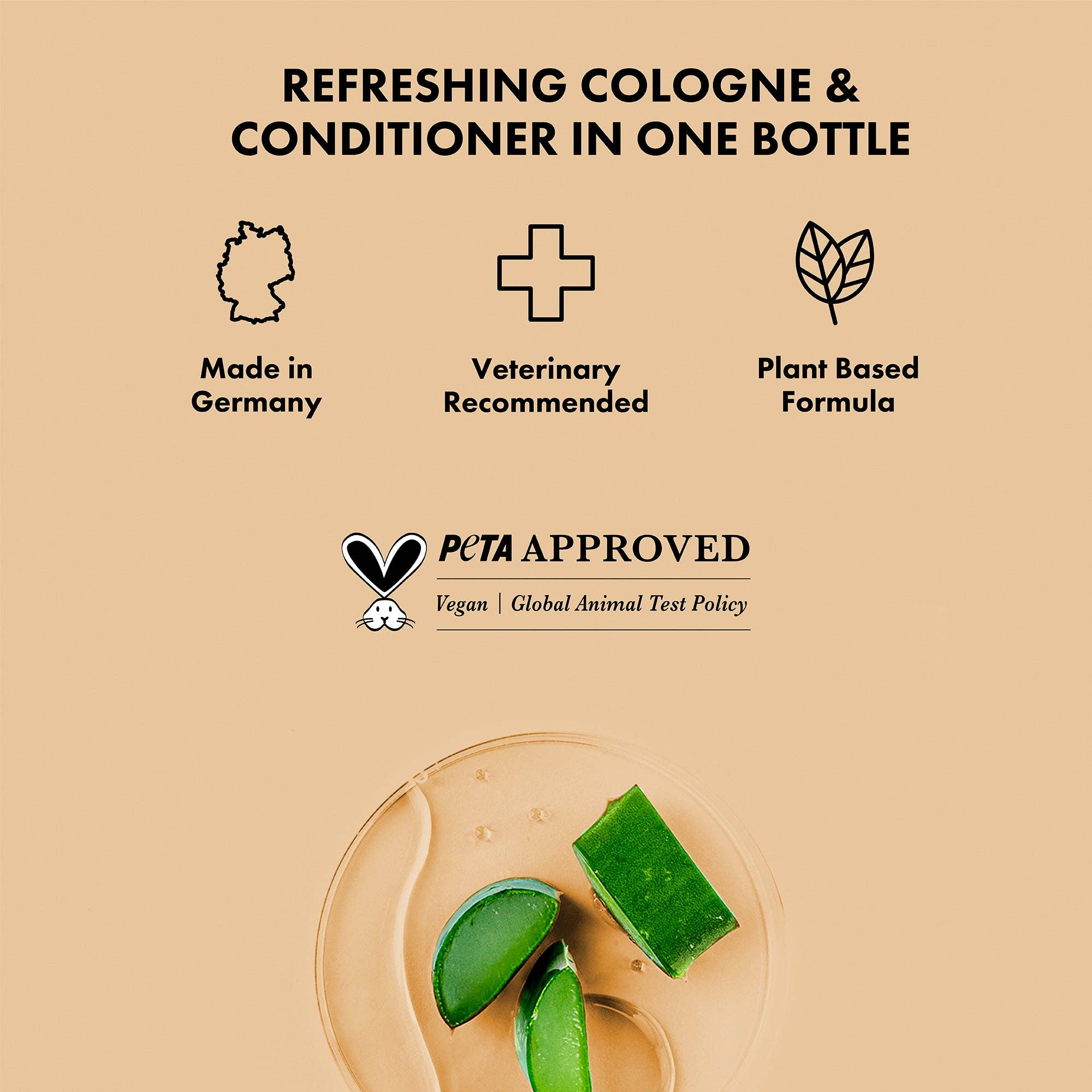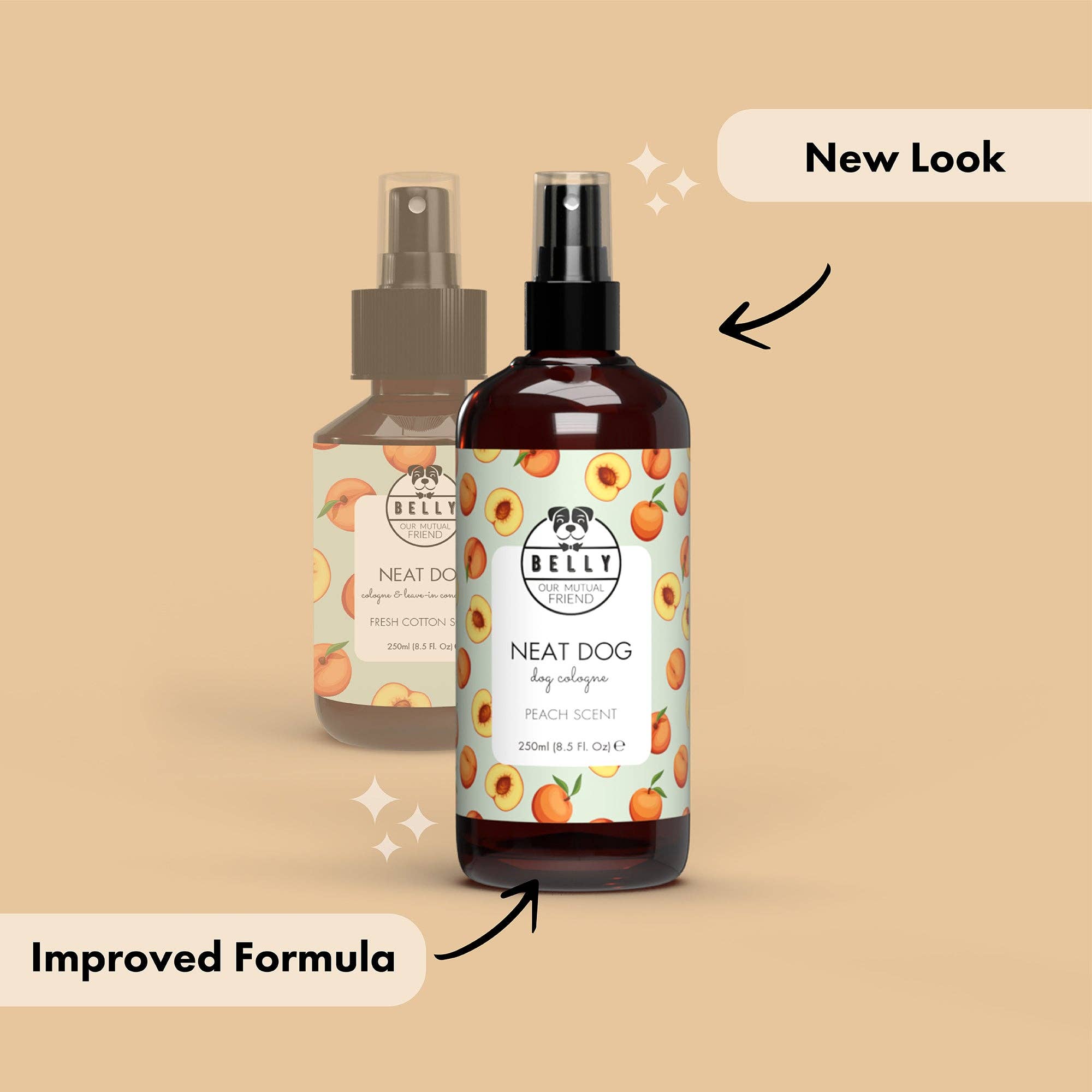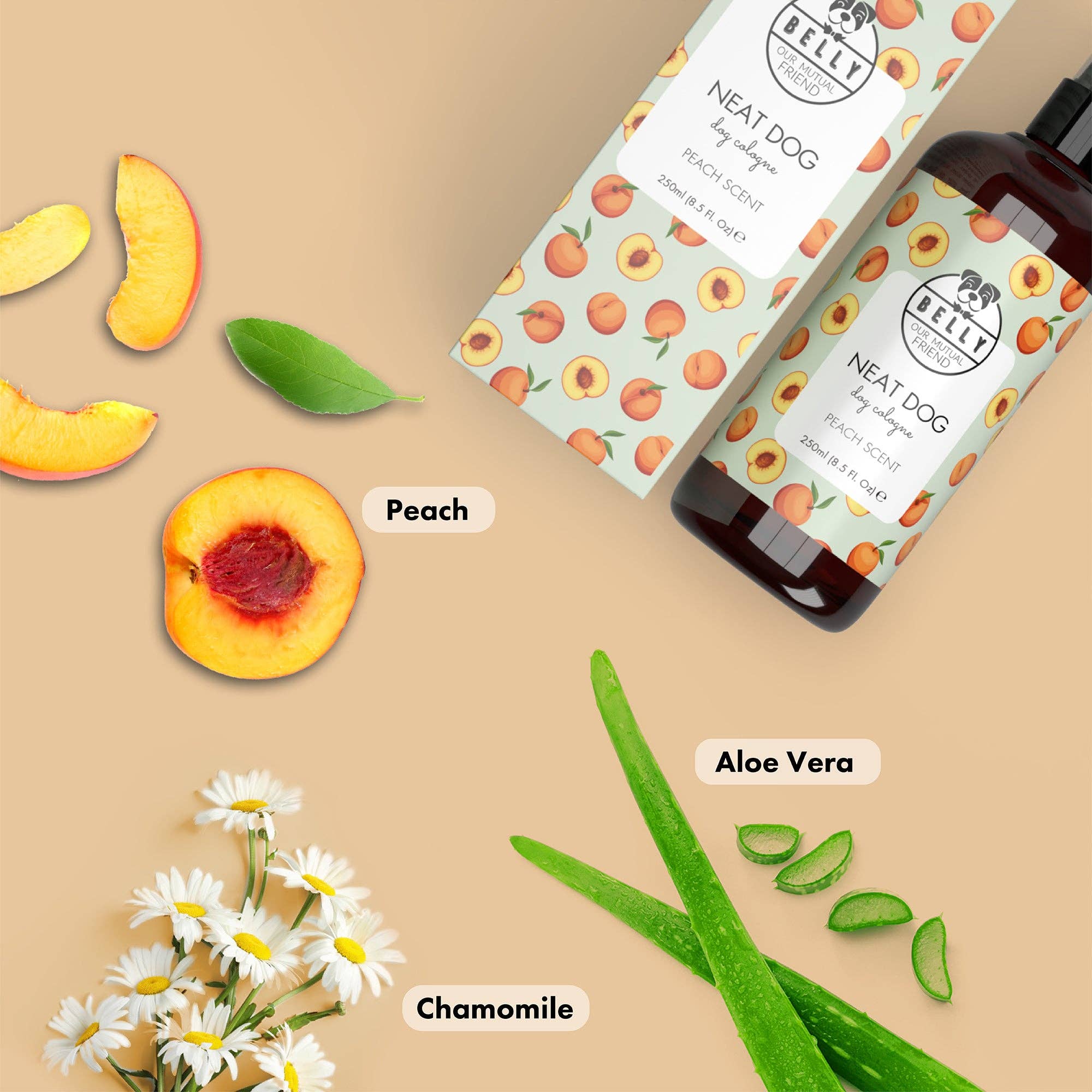 Refreshing cologne spray Long-lasting freshness for your dog's fur. Keep your fluffy friend fresh and perfumed reducing the number of baths. Covers and neutralizes bad odors. It leaves a heavenly good and long-lasting peach smell. Perfect for on the go and whenever there is no time for a dog bath.