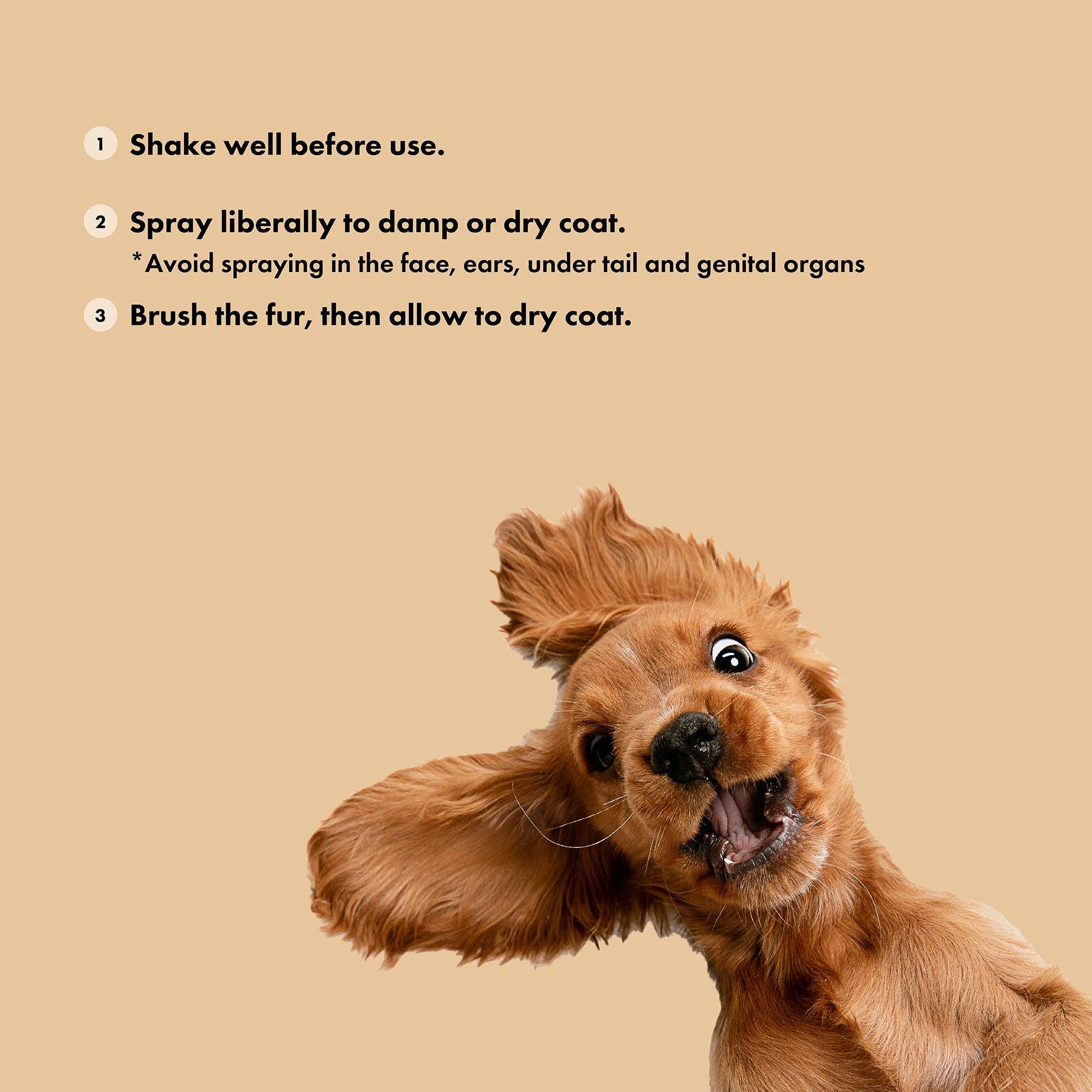 Shake before use. Spray liberally to damp or dry coat. Brush the fur, then allow to dry.