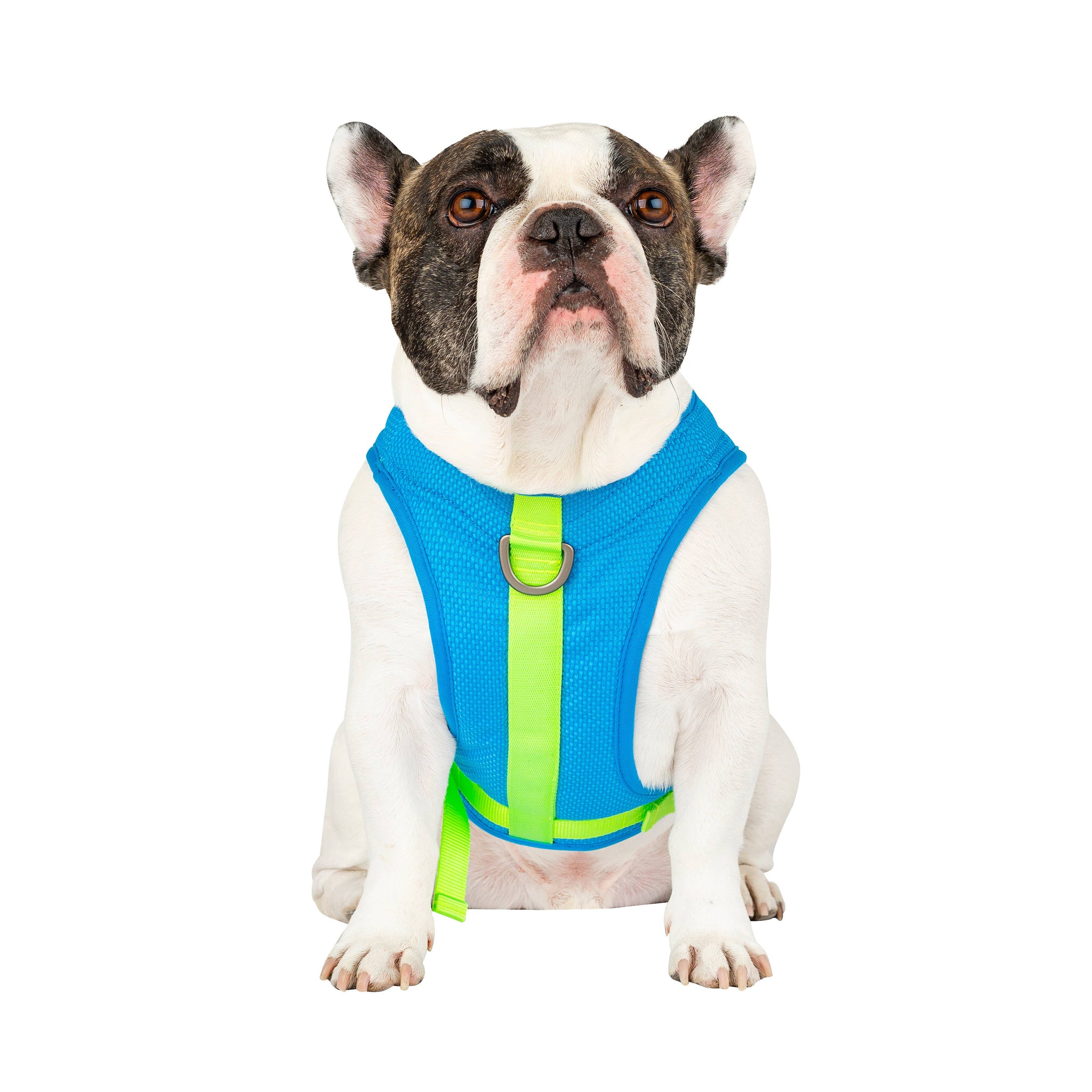 The functional and stylish cooling dog harness for control on hot summer walks - No pull front D-ring and back D-ring leash attachment for ultimate control. - Just add water to initiate the evaporation cooling effect. - Water-retaining fabric keeps your pup cool. - Mesh layers for air circulation. - No chemical coolants. - Adjustable chest straps. - Continue to re-wet the product to maintain the cooling effect.