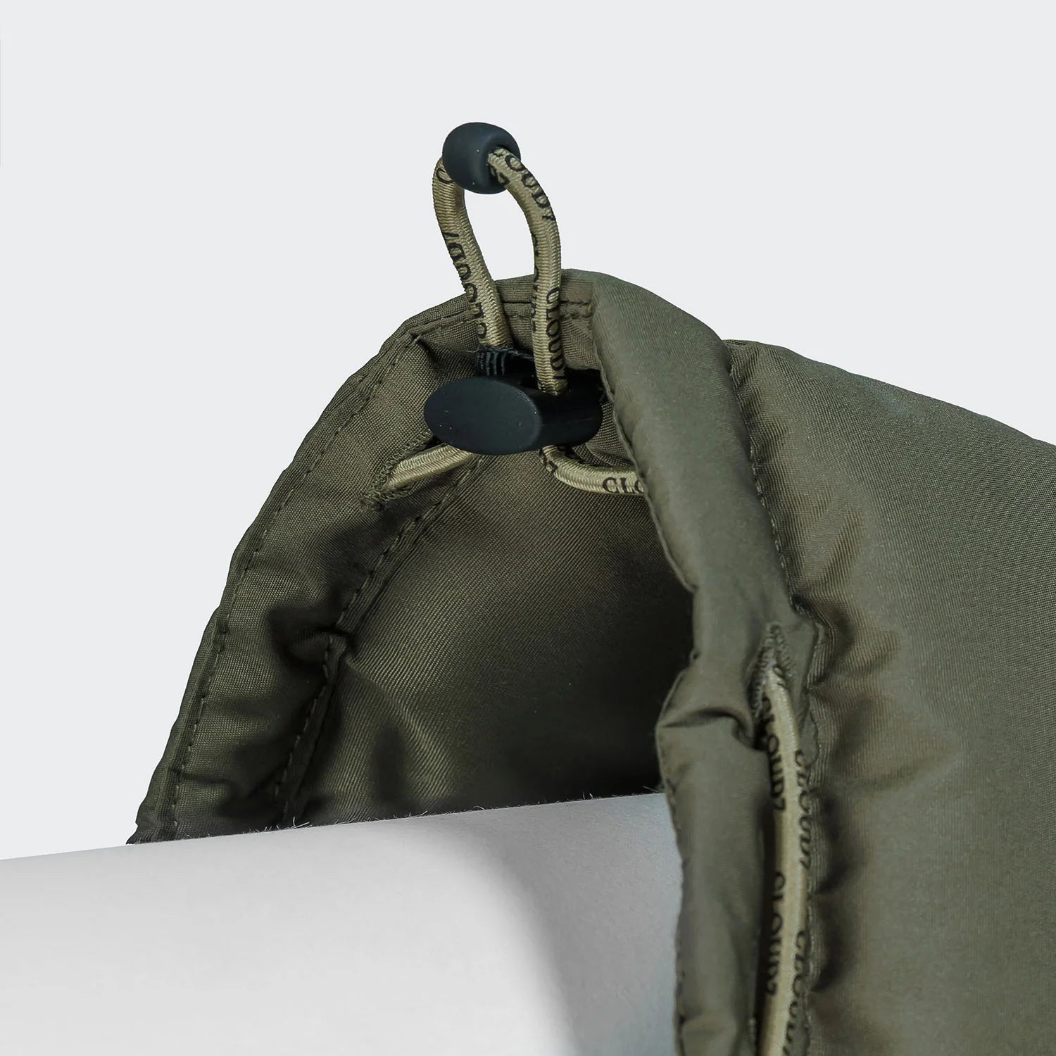 Vegan Dachshund coat made from 100% sustainable materials. This extra warm winter coat for Dachshunds in timeless Light Olive is insulated with eco-puffer made from recycled PET bottles instead of down.