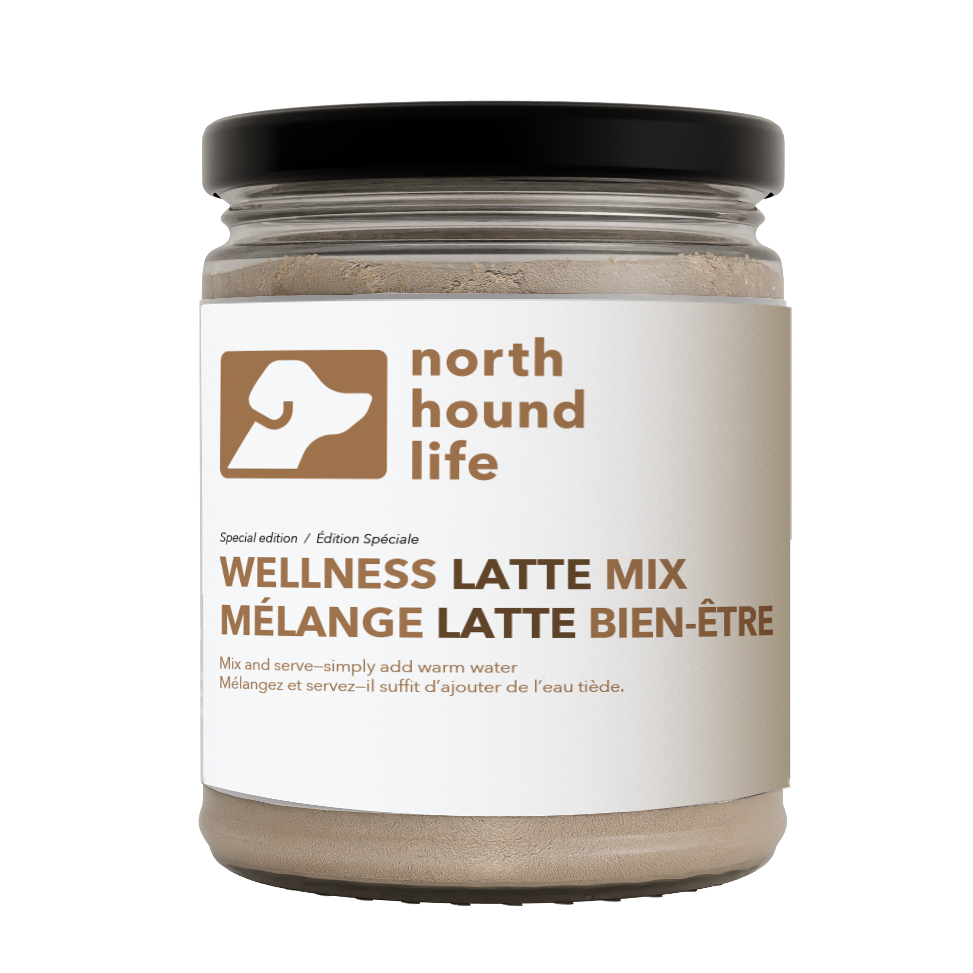 Introducing our Limited-Edition Wellness Latte Mix for Dogs Bring a new favorite to your shelves with our exclusive Wellness Latte Mix, a cooling and nutritious treat that’s like an iced latte for dogs! This unique blend is packed with superfoods, healthy fats, antioxidants, and adaptogens to support immune function and overall well-being — ashwagandha, goat milk, carob and peanut butter. Pet owners can simply mix it with lukewarm water to serve as a cool latte or drizzle it over food for an extra boost of goodness. Perfect for adding hydration and wellness to any dog’s routine. Don’t miss out. 100 g in a recyclable glass jar