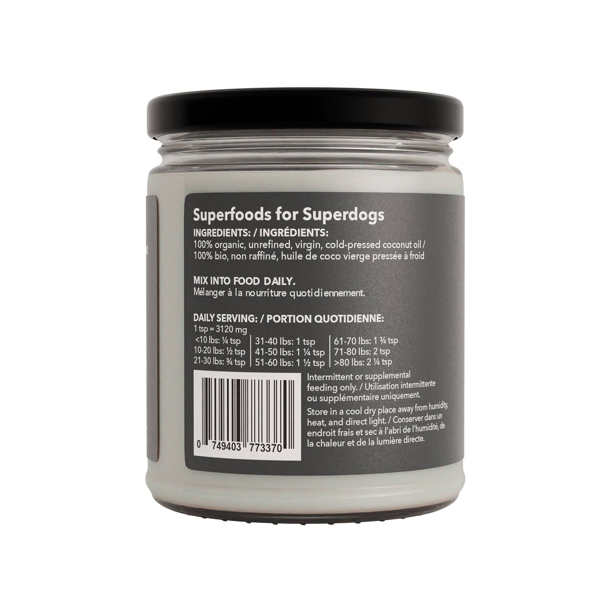 MAY BE GOOD FOR: ✔️ Allergies ✔️ Skin and Coat A whole food product for your dog. 100% organic unrefined, virgin, cold-pressed coconut oil. This is a very popular super food for people and dogs. It's full of saturated fats and most of them come from Medium Chain Triglycerides also known as MCTs. This is where the most benefits are. One of the fatty acids in MCT is lauric acid and it may have antibacterial, antiviral and anti-fungal properties. It may have the ability to improve your dog's skin and coat, aid in digestion and help reduce allergy symptoms. Also, as a pet parent, you can also use coconut oil topically on dry skin, hot spots and bug bites. 210 g in a recyclable glass jar.