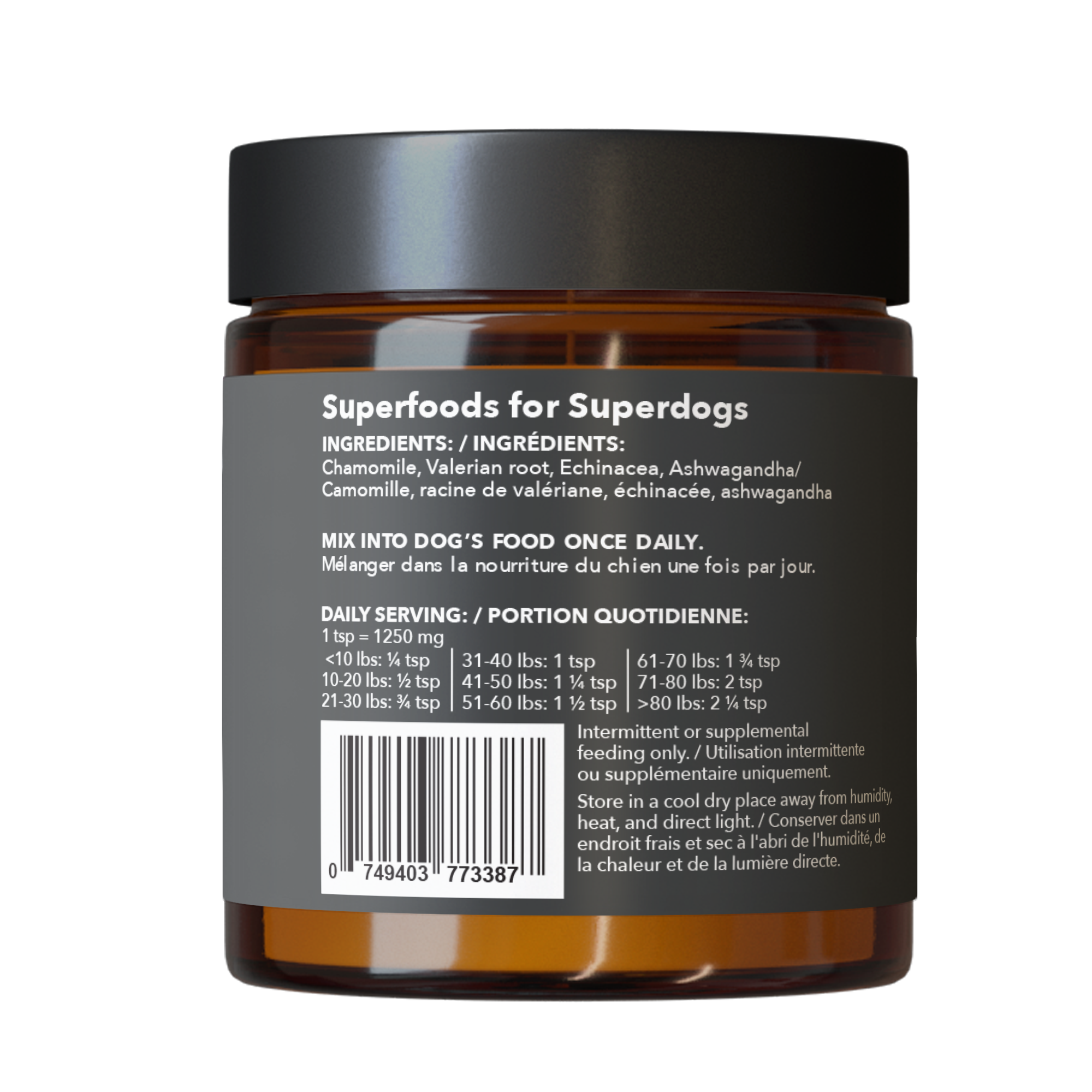 Experience the Super Zen Superblend and its power to help keep your dog naturally calm, cool and collected. Our unique blend of ingredients may help reduce stress from all the everyday annoyances your dog might experience, like changes in routine, loud noises, or long car rides. Plus, it may help maintain a healthy immune system, no matter what life throws at them, your dog will be ready!