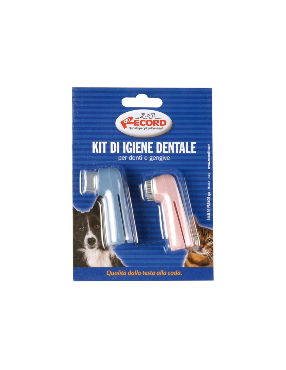 Kit with 2 brushes: one with bristle for the teeth and one with rubber for the gums.